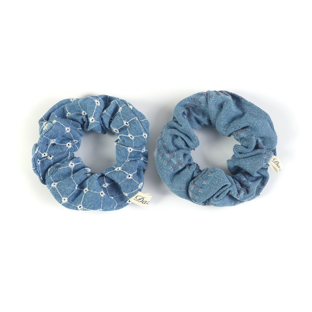 pony scrunchie stitch denim